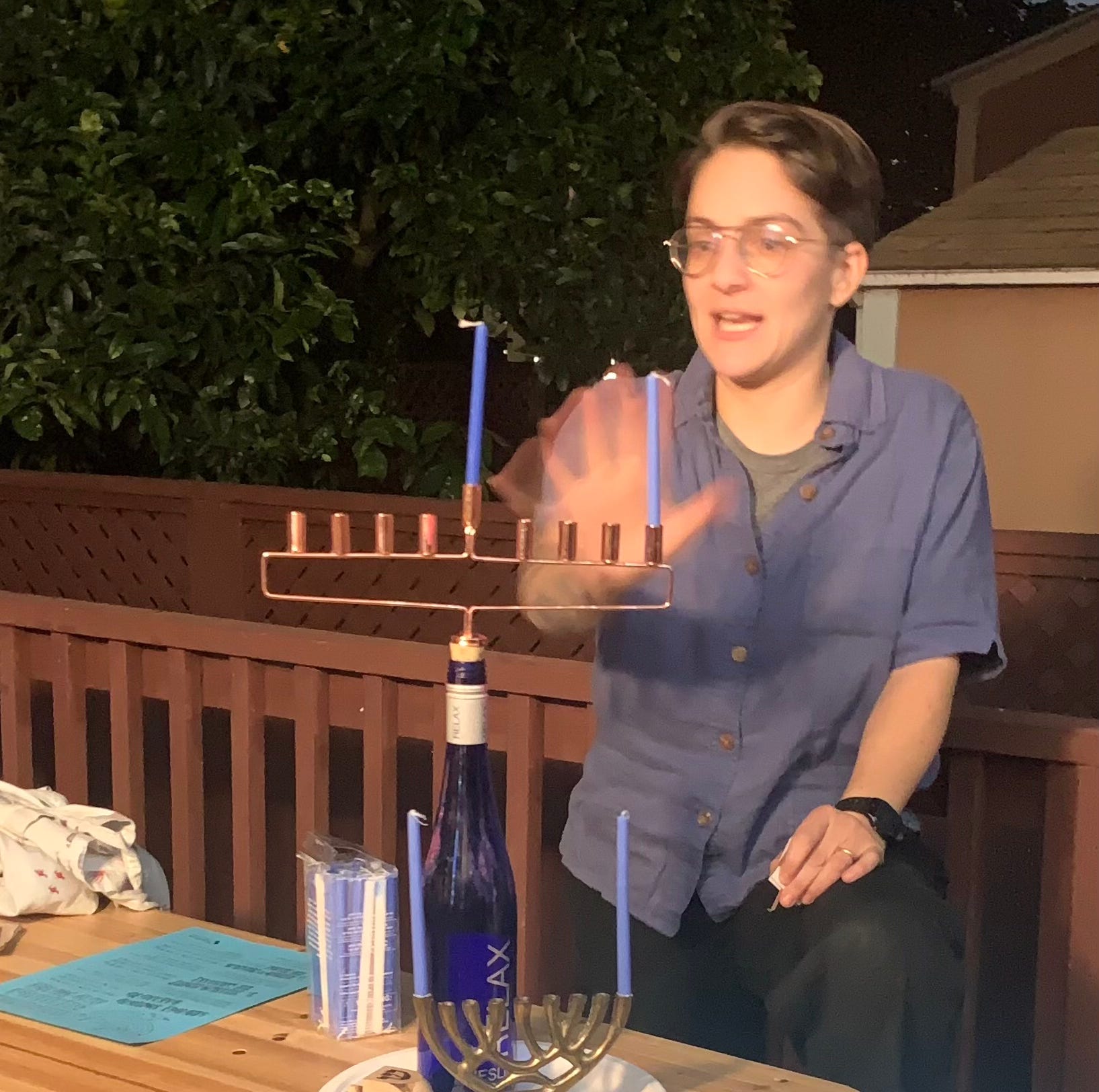 The chanukiah is our physical reminder that yes, warmth will come again. It is our way to see it and feel it and hear it and smell it and touch it. The strike of the match and that first scent of burnt paper stinging your nose. The hiss of fire. Warm wax. Light is on its way.